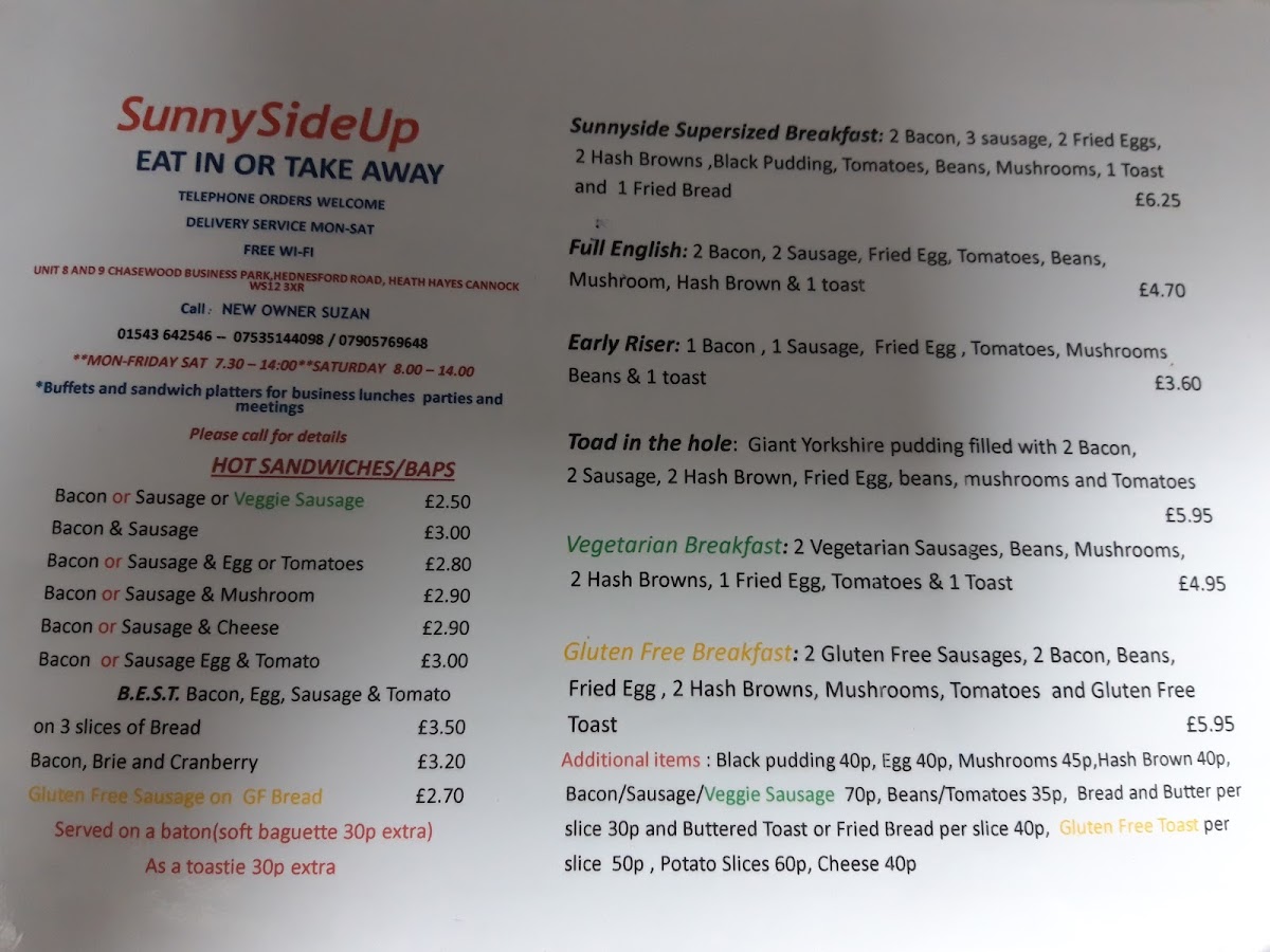 Welcome to Sunny Side Up Cafe, a hidden gem situated at Chasewood Park Business Centre in Cannock, UK. This charming café specializes in breakfast, showcasing a mouthwatering selection that embraces both traditional and innovative options.